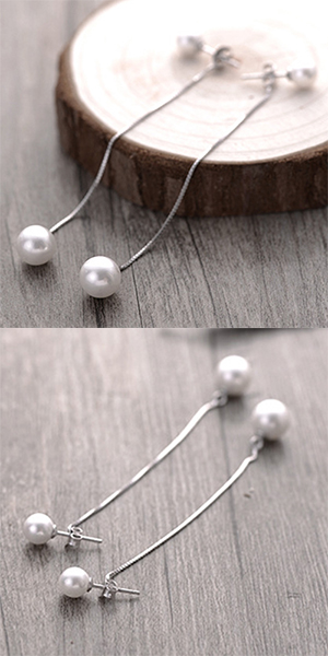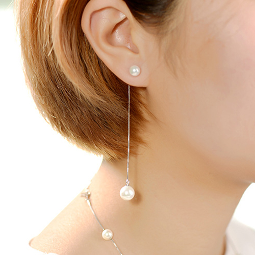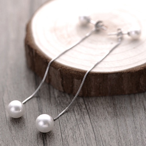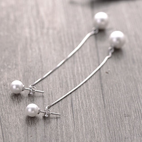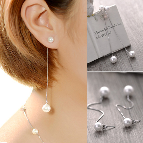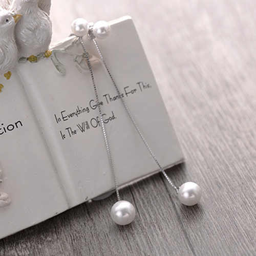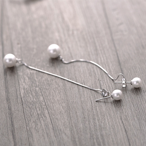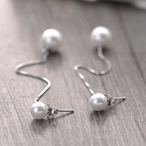 Fashion Style Silver-Tone Tasseled Pearl Pendant Earrings