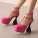 Fashion Stylish Round-toe T-string High-heeled Platform Sandals