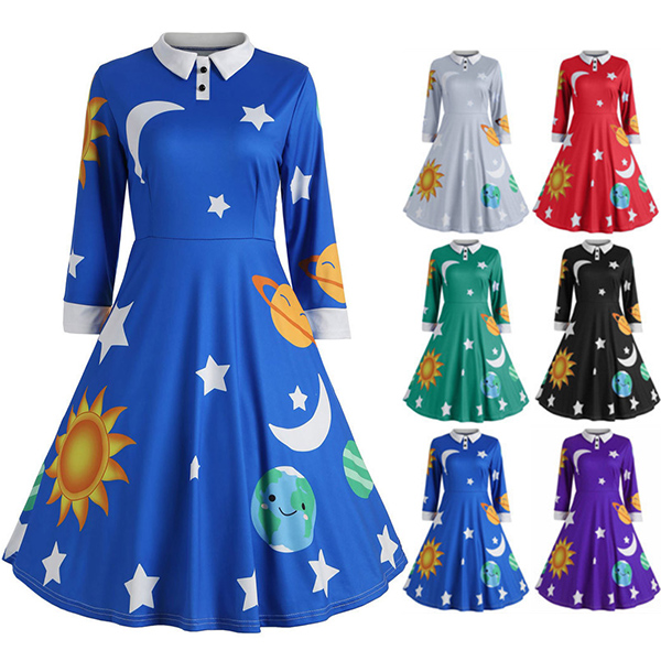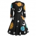 Fashion Sun Moon Printed Stand Collar Long Sleeve Dress