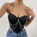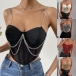 Fashion Sweatheart Neckline Chain Croset Crop Shirt