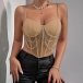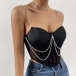 This is a trendy and edgy crop shirt that exudes confidence and glamour. The sweetheart neckline offers a flattering and feminine silhouette, while the chain design and corset style adds a bold and fashion-forward element to the crop shirt. Perfect for a night out, a concert, or a special event, this crop shirt is designed to showcase your bold and daring style.