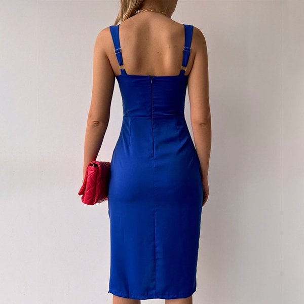 This dress is made of a comfortable and stretchy fabric that is sure to hug your curves in all the right places. The sweetheart neckline and ruched detailing add a touch of femininity while the slit on the side gives it a bit of edge. The bodycon fit makes this dress perfect for any special occasion or night out. It's the perfect combination of sophistication and sexiness.