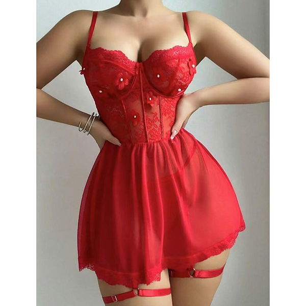 Fashion Sweetheart Neckline Beaded Floral Lace Nightwear Dress