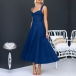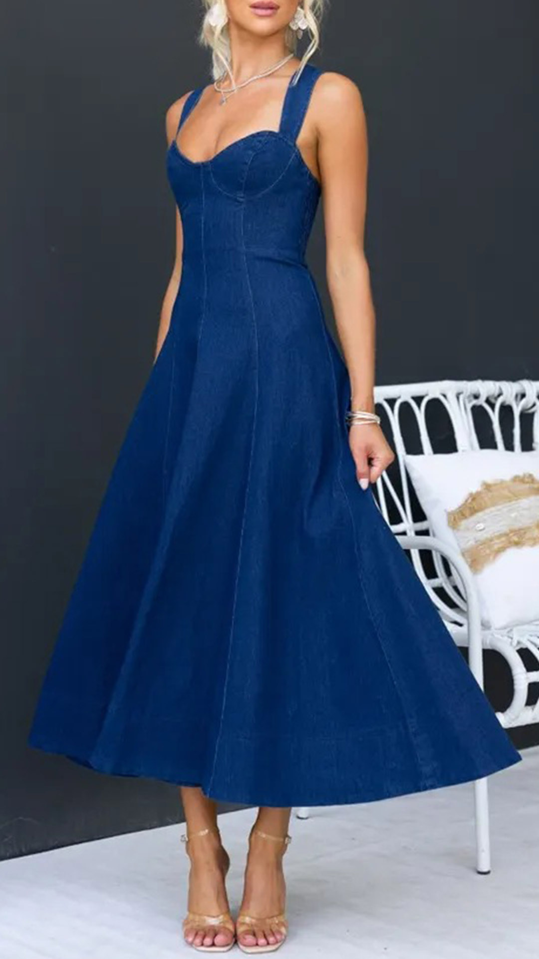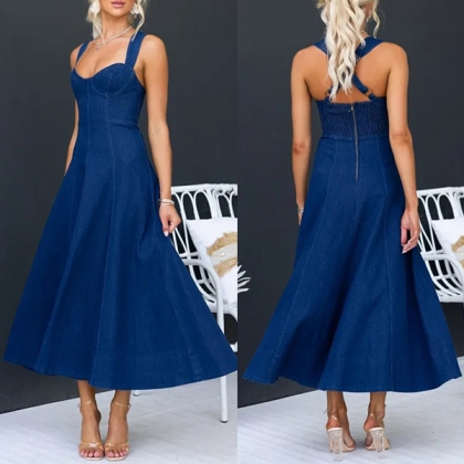 Fashion Sweetheart Neckline Cross Backless Cami Denim Midi Dress