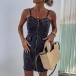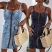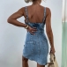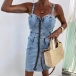 Fashion Sweetheart Neckline Front Zipper Bodycon Old-washed Denim Dress