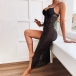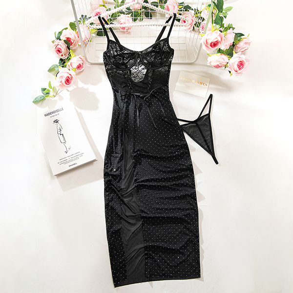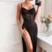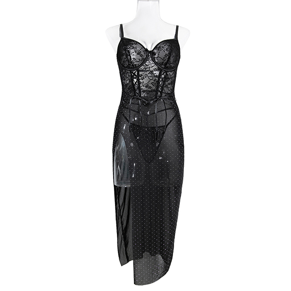 Fashion Sweetheart Neckline Lace-up Lace Spliced Rhinestone Side Slit Party Dress