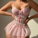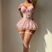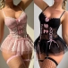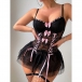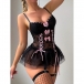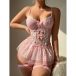 Fashion Sweetheart Neckline Lace-up Ruffle Hemline Lace Two-piece Lingerie Set
