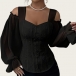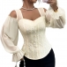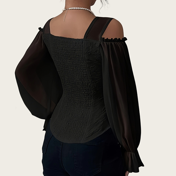 This shirt features romantic sweetheart neckline styling with elegant open-shoulder design and luxurious gauze splicing along the long sleeve for contemporary feminine elegance. And the jacquard fabric offers rich pattern sophistication and luxurious tactile interest. Wanna have one?