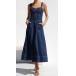 Fashion Sweetheart Neckline Patch Pockets Button Denim Dress