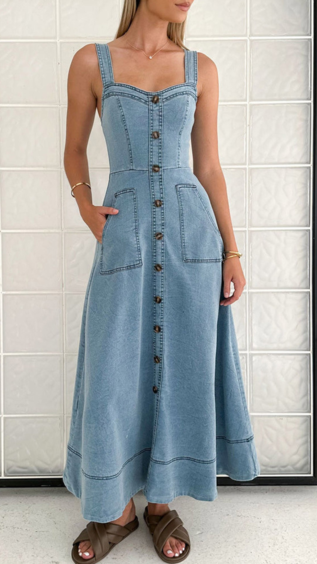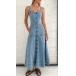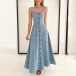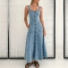 Blending retro-chic style and modern femininity, this denim dress features a captivating sweetheart neckline and a bold, open-back design that's sure to turn heads. Crafted from a lightweight, old-washed denim fabric, this dress has a soft, lived-in feel that perfectly channels laid-back, vintage vibes.