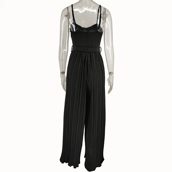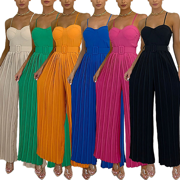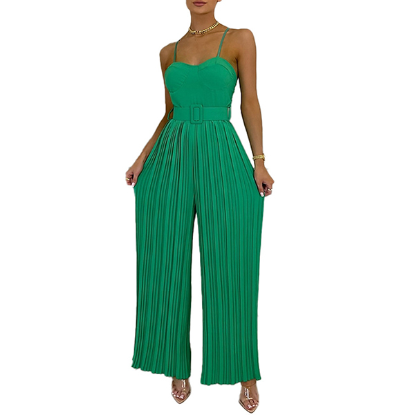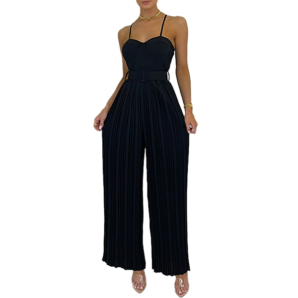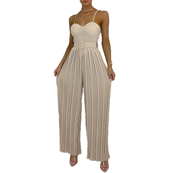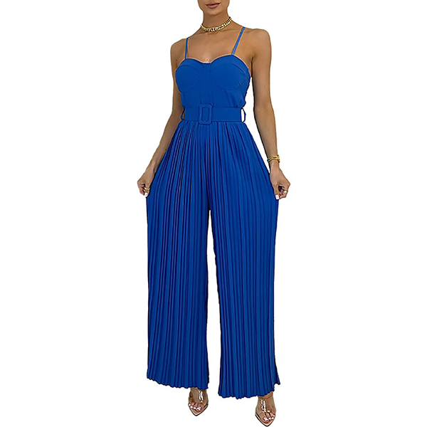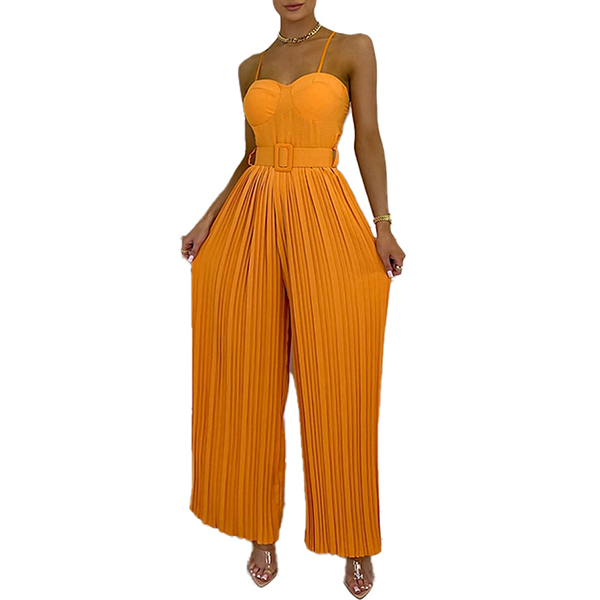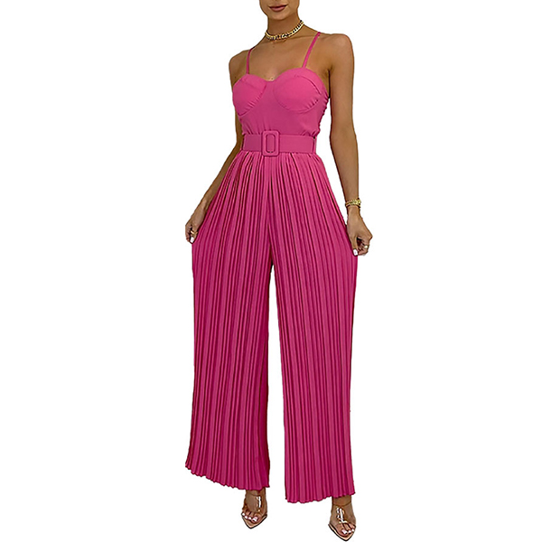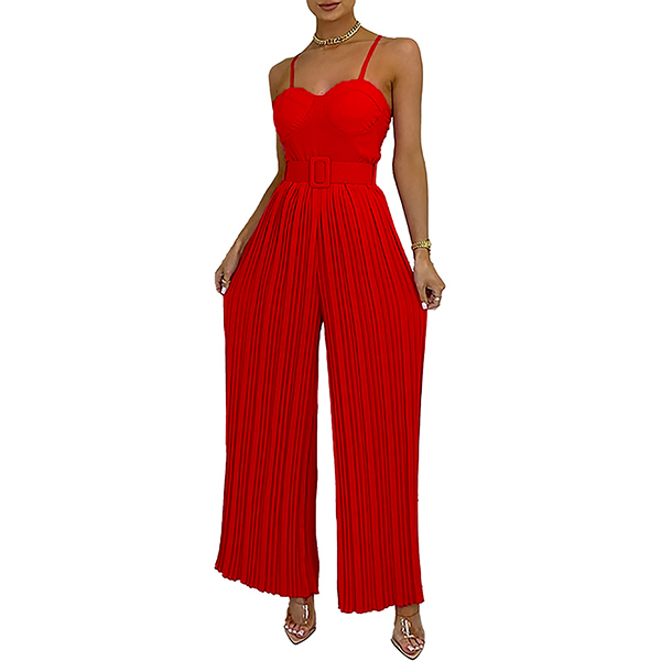 Fashion Sweetheart Neckline Pleated Wide-leg Cami JUmpsuit with Belt