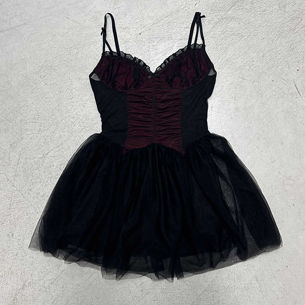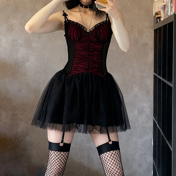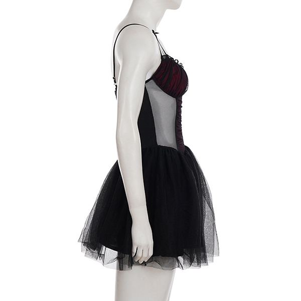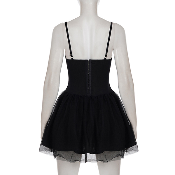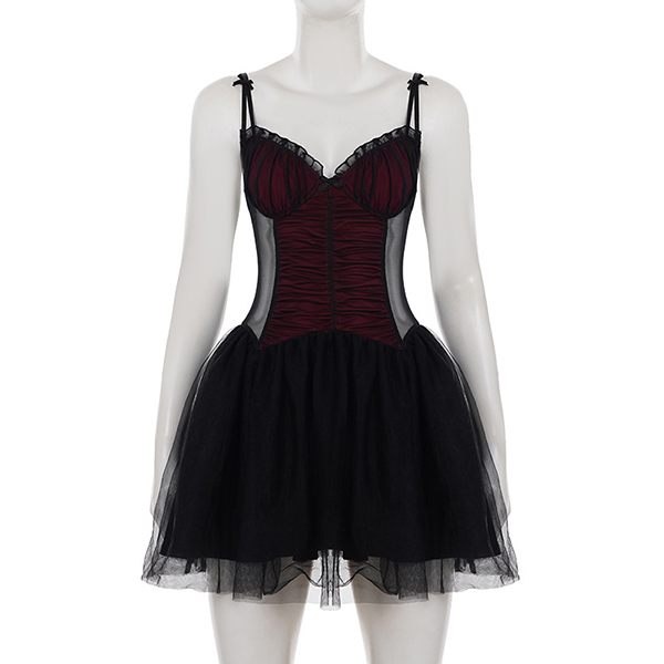 Fashion Sweetheart Neckline Ruched Gauze Spliced Ruffle Hemline Dress