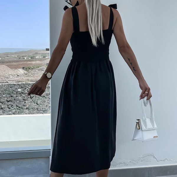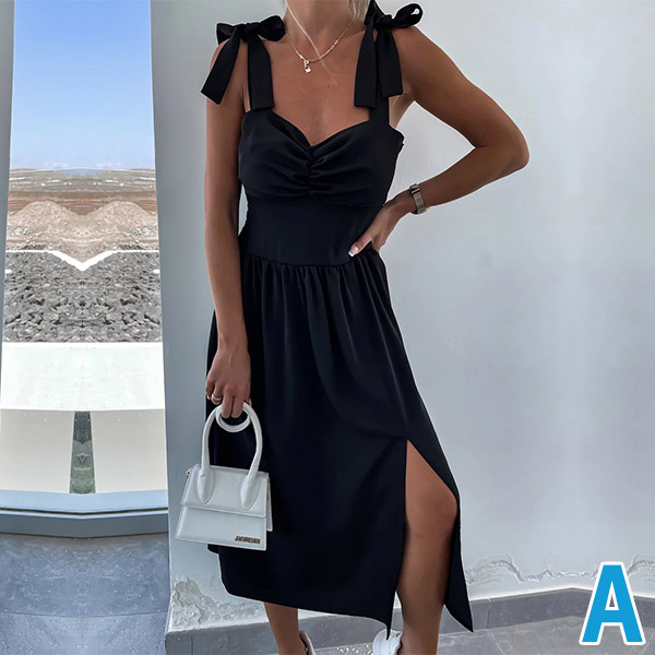 Fashion Sweetheart Neckline Self-tie Shoulder Strap Slit Dress