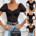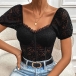 Fashion Sweetheart Neckline Short Sleeve Lace Shirt