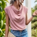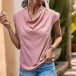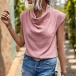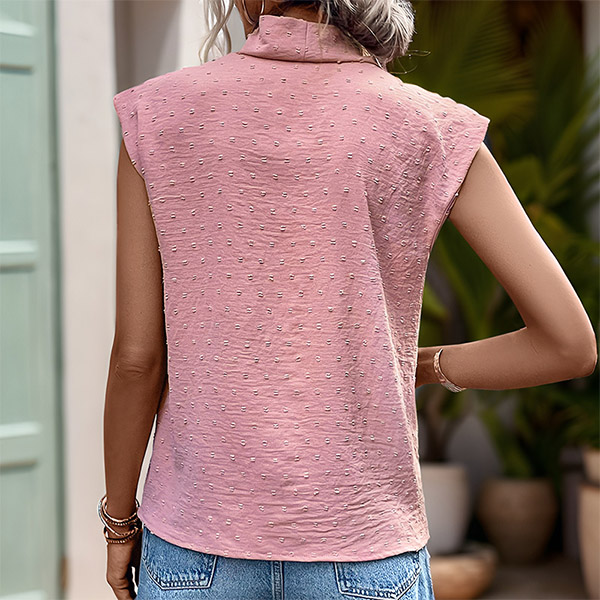 Fashion Swiss-dot Draped Neckline Sleeveless Shirt