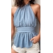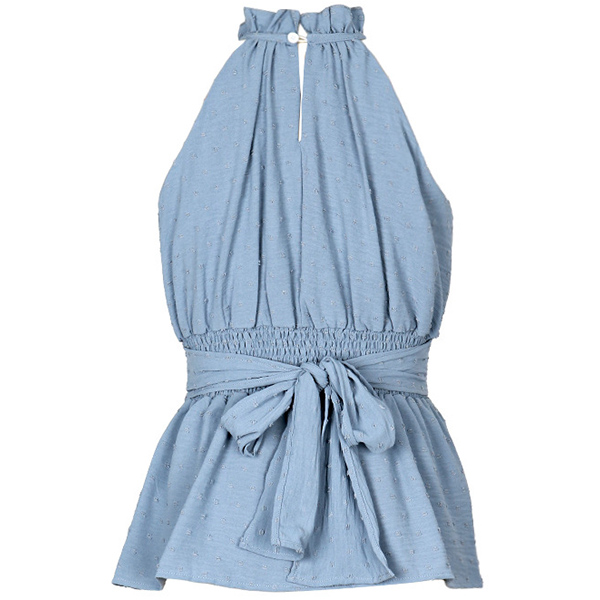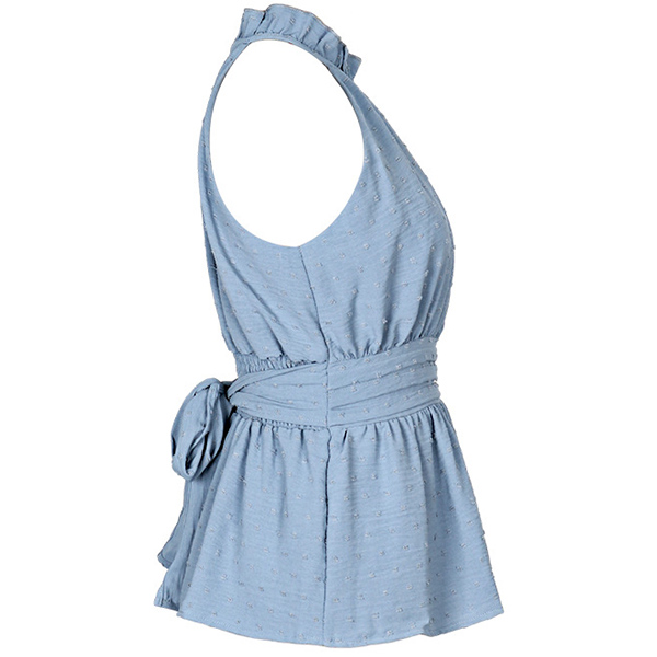 Fashion Swiss-dot Mock Neck Sleeveless Self-tie Shirt