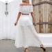 This Swiss-dot two-piece set consist of an off-the-shoulder shirt and a slit skirt~ Perfect for this summer vacation.