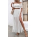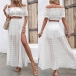 Fashion Swiss-dot Two-piece Set Consist of Off-the-shoulder Shirt and Slit Skirt