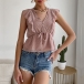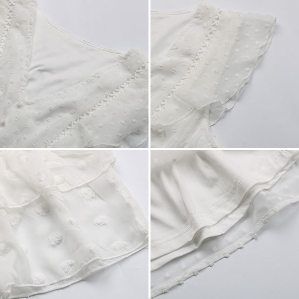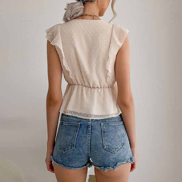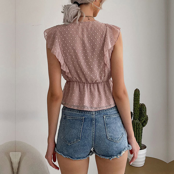 Fashion Swiss-dot V-neck Ruffled Sleeveless Shirt