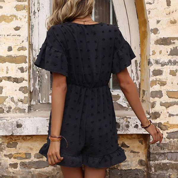 Fashion Swiss-dot V-neck Short Sleeve Romper