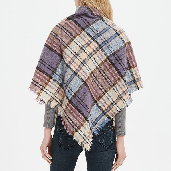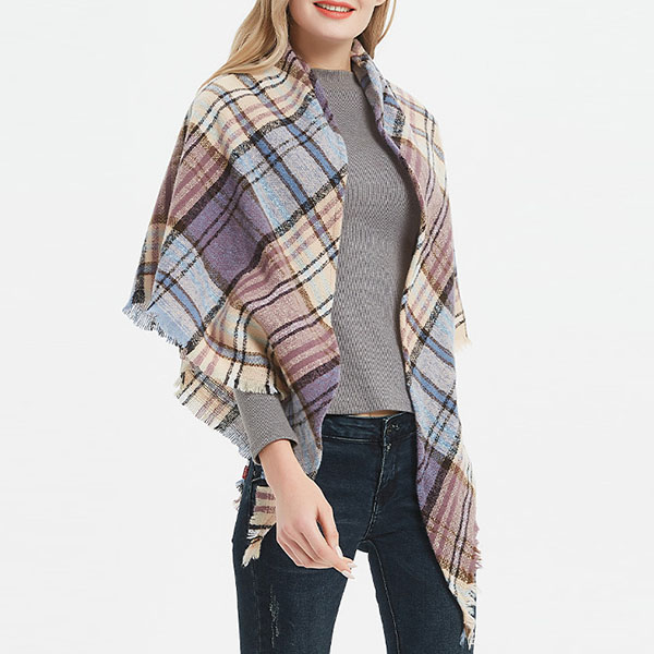 Not only can be as a shawl,but also can be as a scarf,this wonderful piece is a good choice for these cold days. Plaid element,designed with tassel edge,this triangle scarf can keep you warm as well as enrich your dress up.