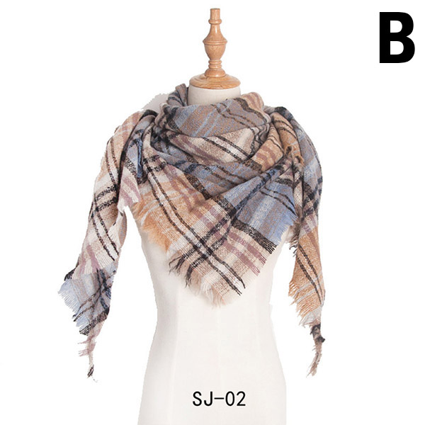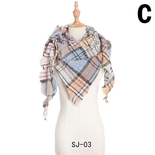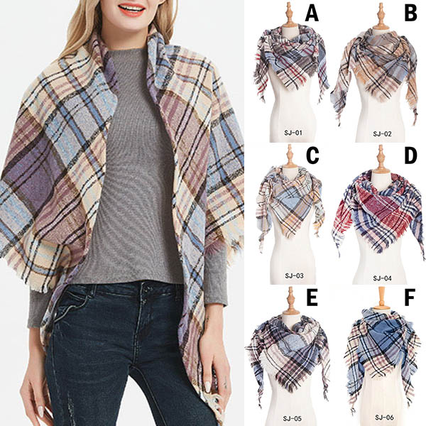 Fashion Tassel Edge Plaid Triangle Shawl Scarf