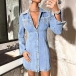 Fashion Tassel Stand Collar Slit Long Sleeve Front Button Old-washed Denim Dress