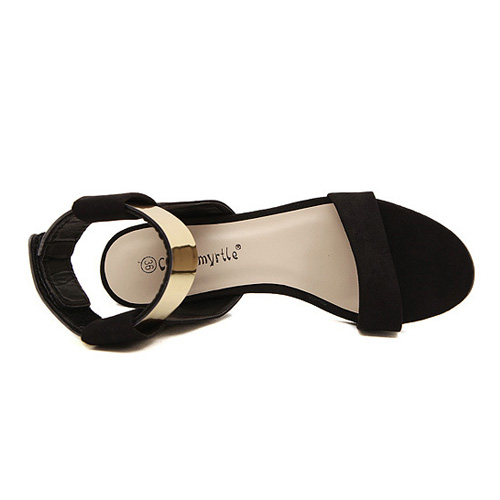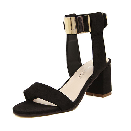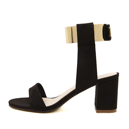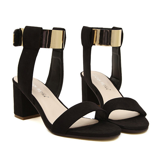 How about this one? It features thick heel and open toe style. Pairing with your fashion