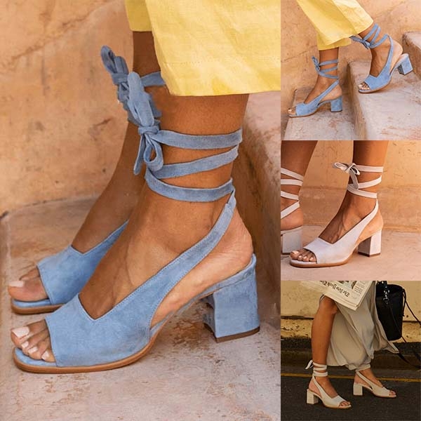 This pair of sandals is outfitted with thick high heel,open toe and breathable lining,which can offer