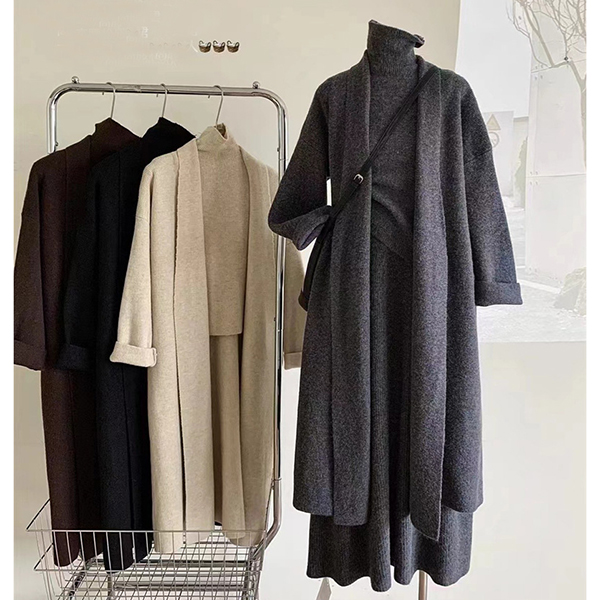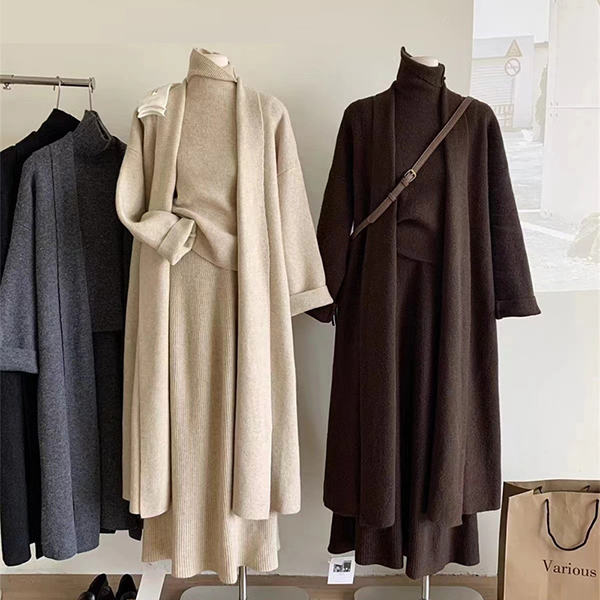 Fashion Three-piece Consist of Mock Neck Sleeveless Shirt, Midi Skirt and Cardigan