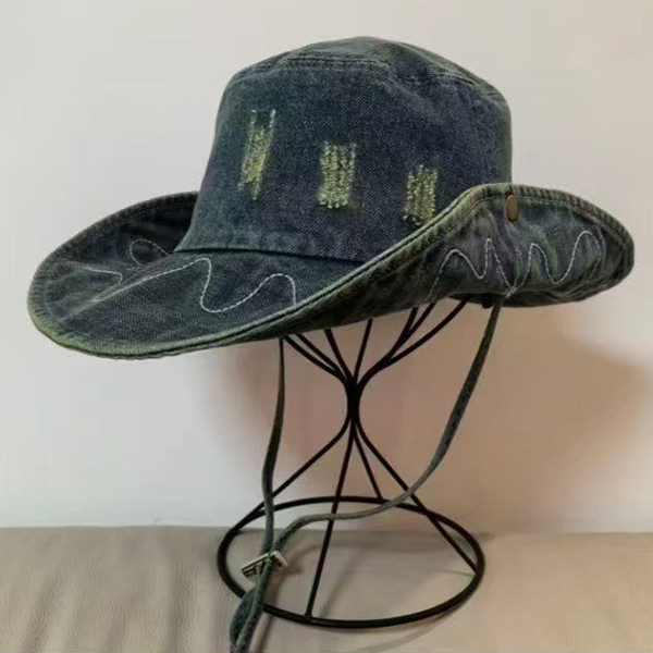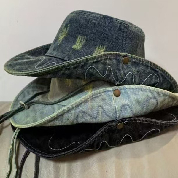 Fashion Tie-Dye Denim Bucket Hat for Sun Protection