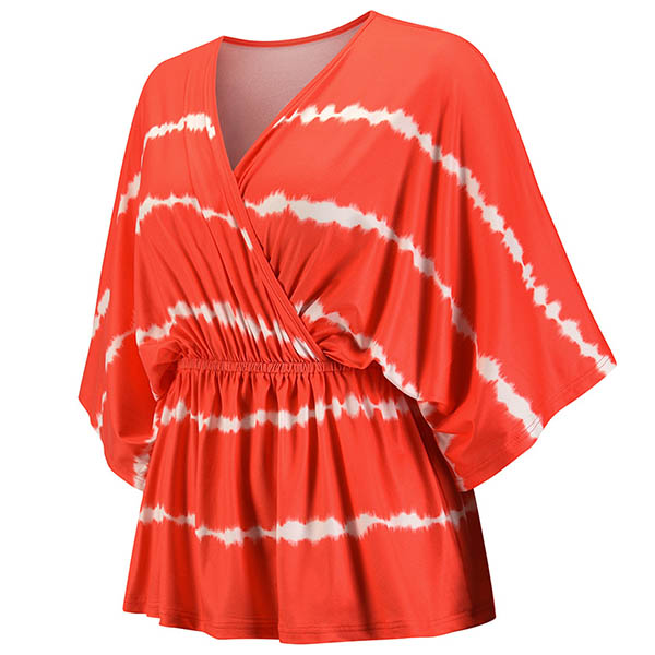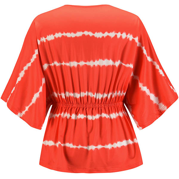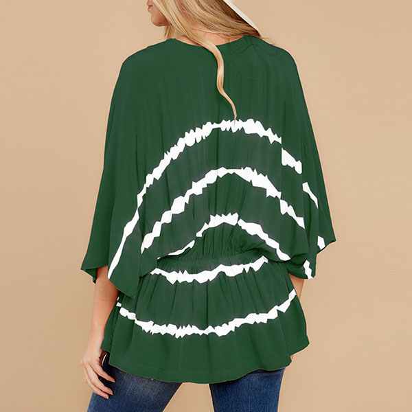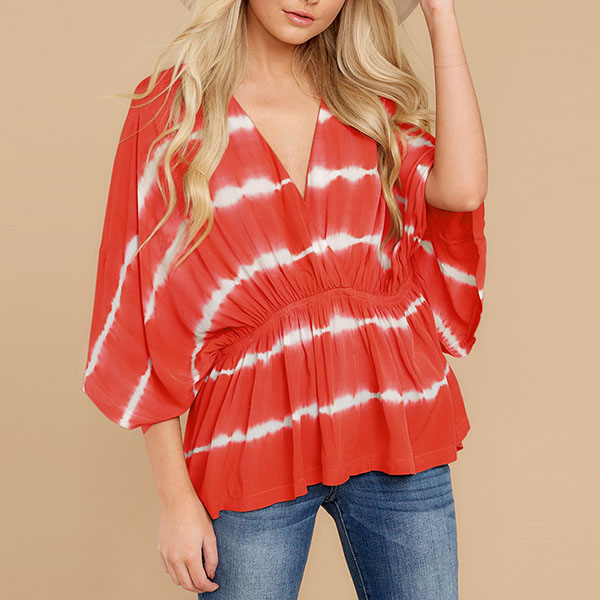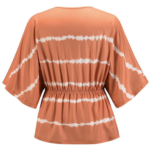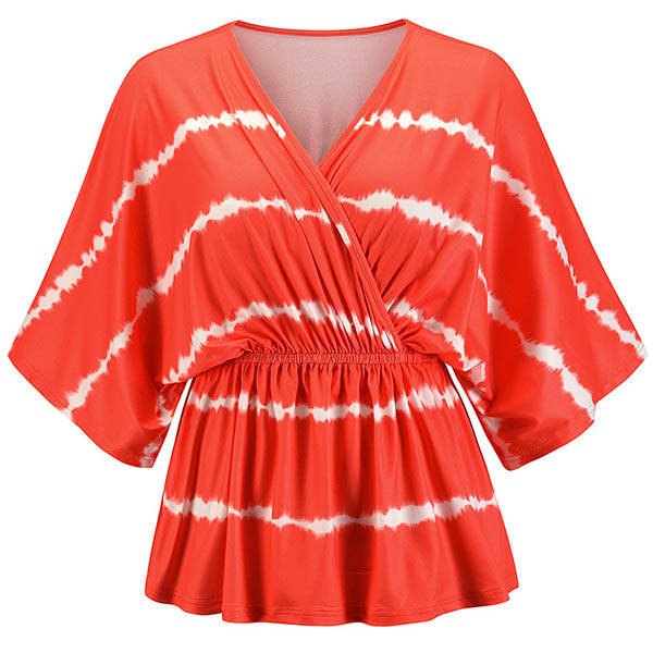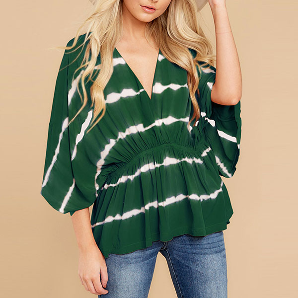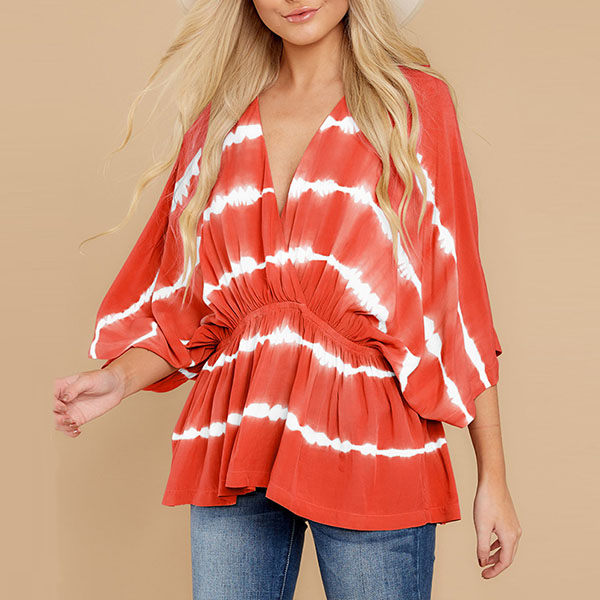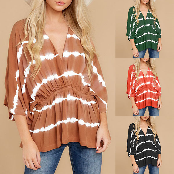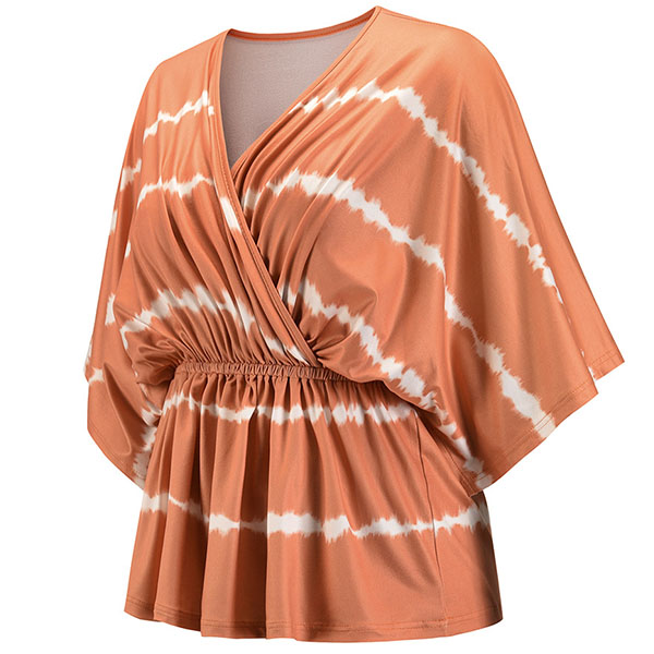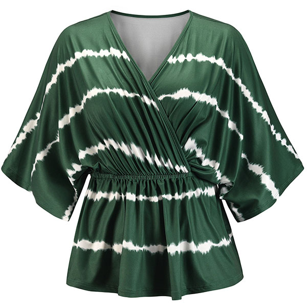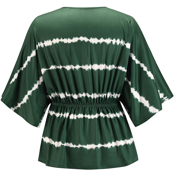 Fashion Tie-dye Printed Dolman Sleeve V-neck Top