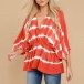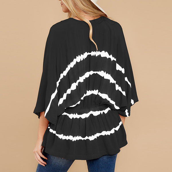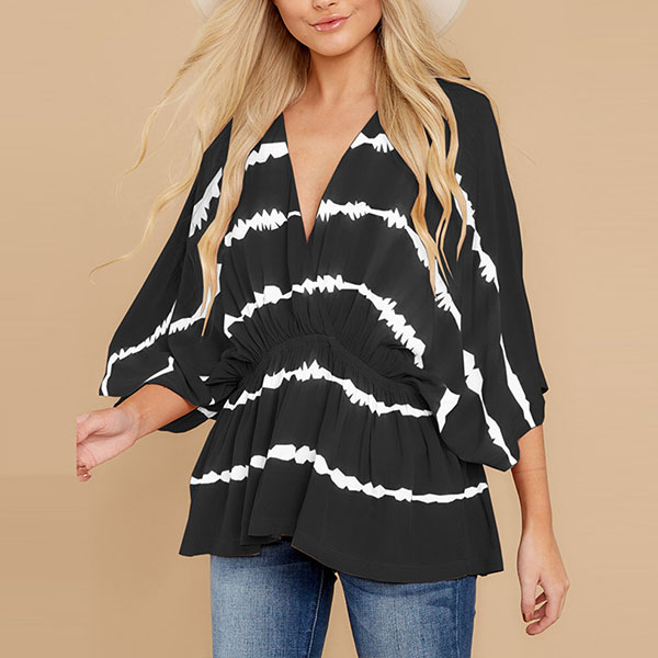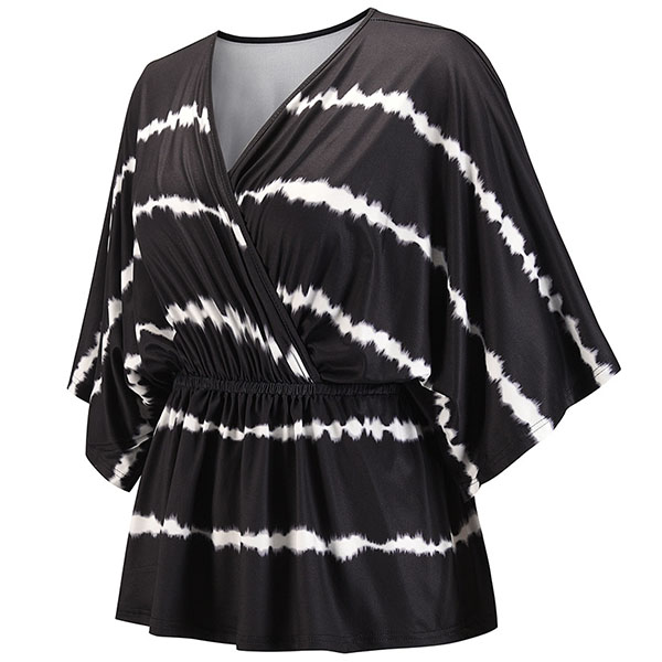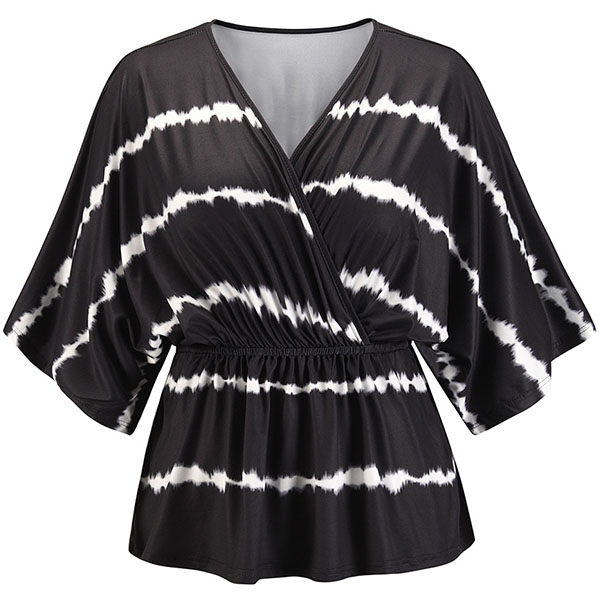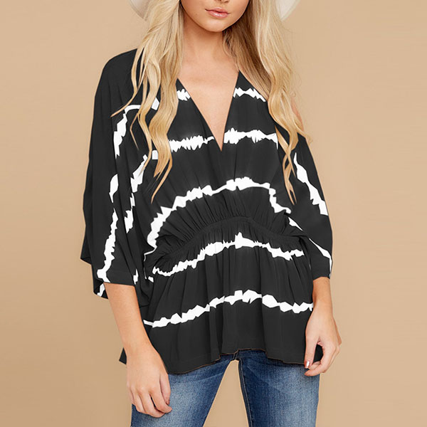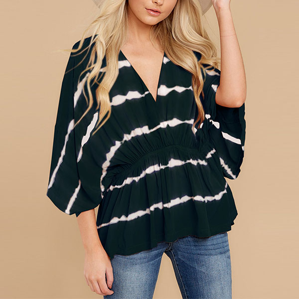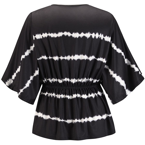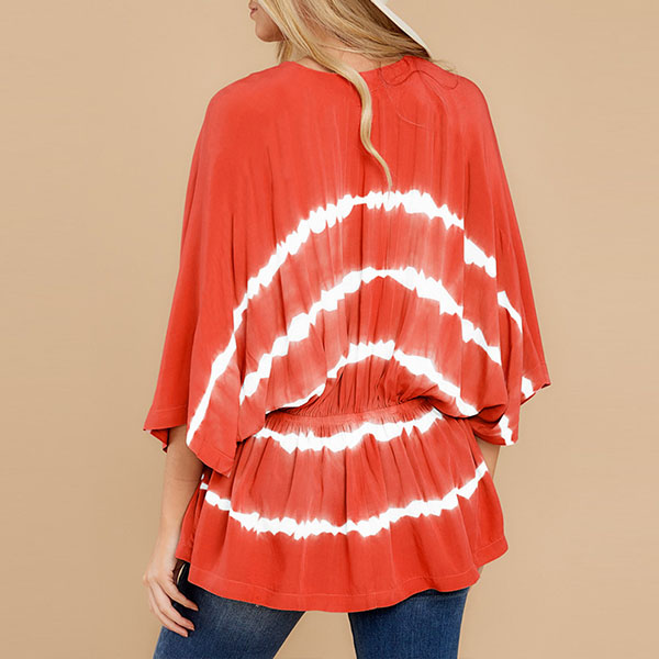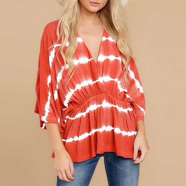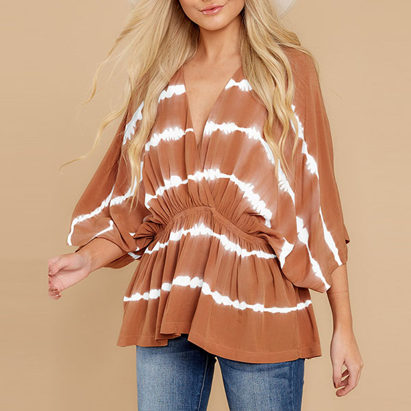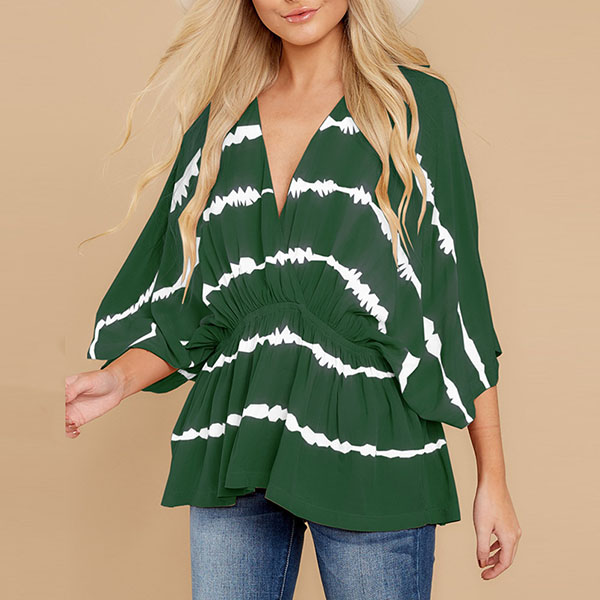 Fashion Tie-dye Printed Dolman Sleeve V-neck Top