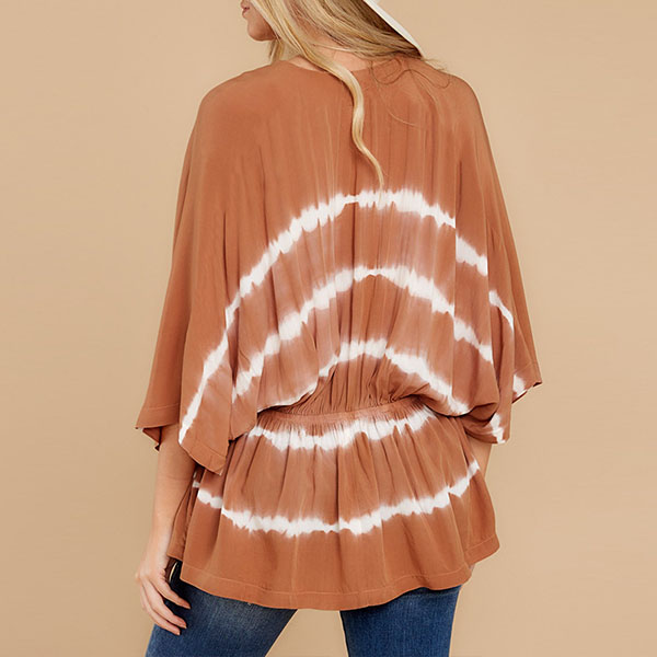 Start your wonderful day with a delightful piece such as this top. The tie-dye printed details make it look so eye-catching,while the dolman sleeve and v-neck design will make this piece look more attractive. We suggest you matching with a tight pants to have a fashionable daily look.