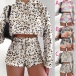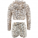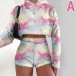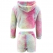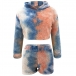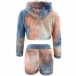 Fashion Tie-dye Printed Long Sleeve Hooded Plush Crop Top + Shorts two-piece Set