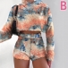 Not only can keep you warm,but also can exude your sexy and flirty side,that's why we suggest you this two-piece set. The tie-dye printed details can help you gain more eyes. Including a long sleeve hooded crop top and a high waist shorts,this two-piece set can help boost your entire charm.