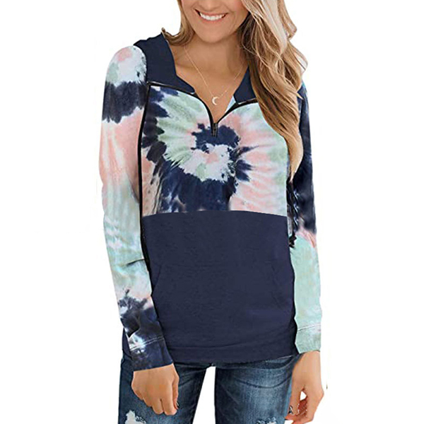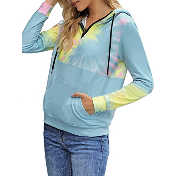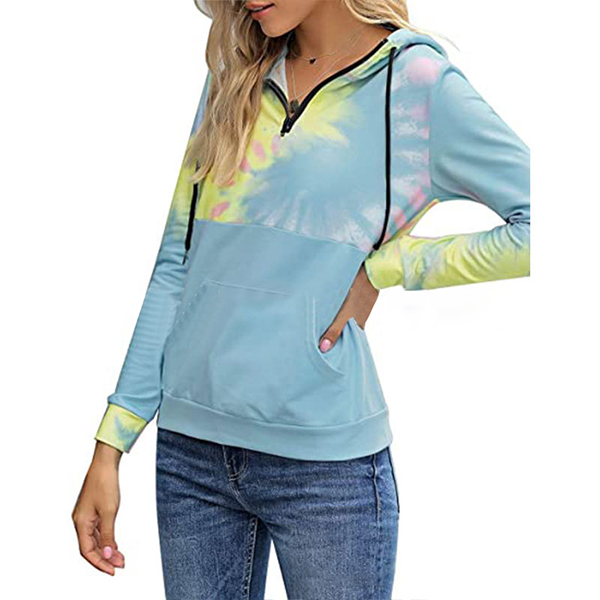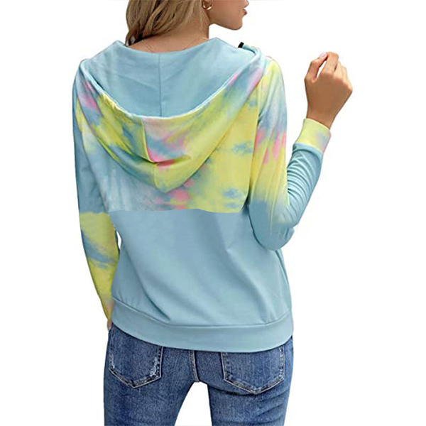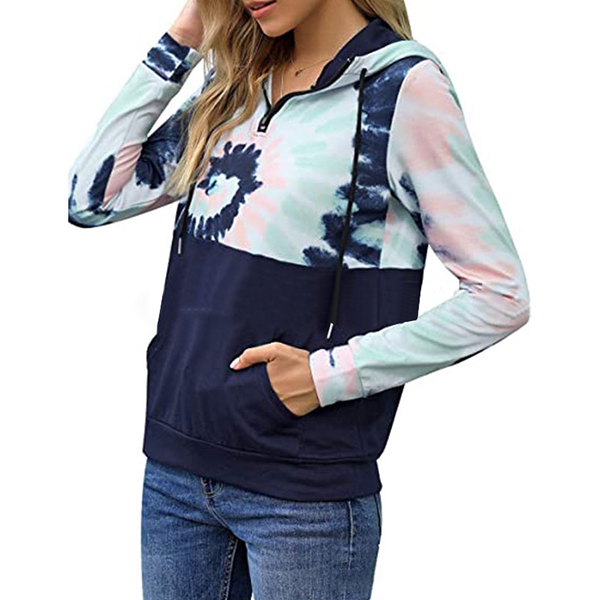 When the autumn season hits,this cozy yet stylish sweatshirt can be your wise choice. The tie-dye printed details make this piece look so stylish and attractive. Finished with long sleeve and hooded silhouette,this sweatshirt can give you a comfortable day while it offers you a casual,relaxed style.