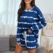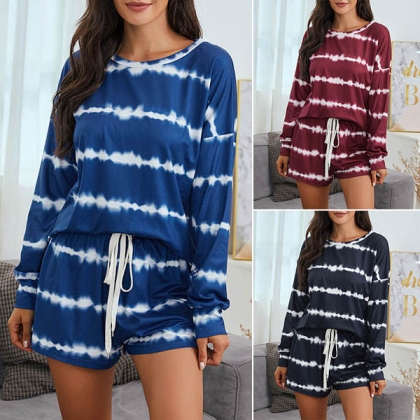 Fashion Tie-dye Printed Long Sleeve Round Neck T-shirt + Shorts Two-piece Set
