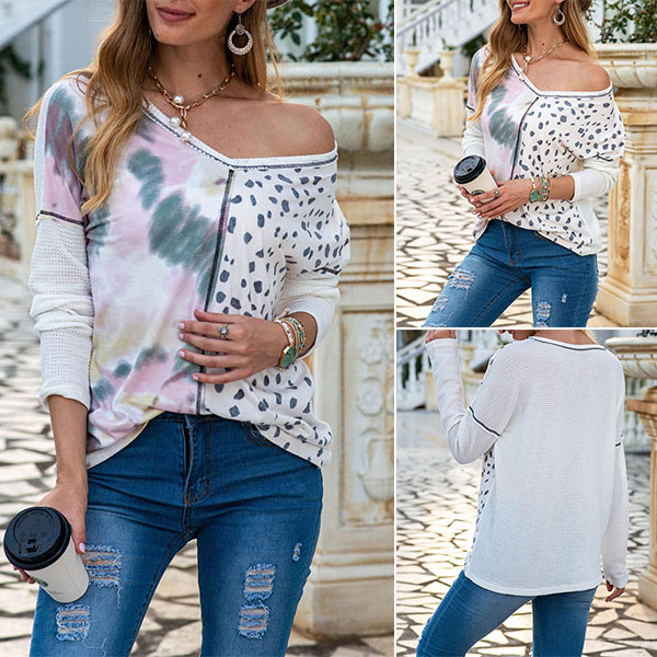 This t-shirt is crafted from soft and breathable fabric,with long sleeve and v-neck design,which can offer you a comfortable day. Moreover,the tie-dye and leopard printed details will make this piece look more stylish and attractive. You can just enrich your wardrobe with this little piece.