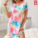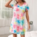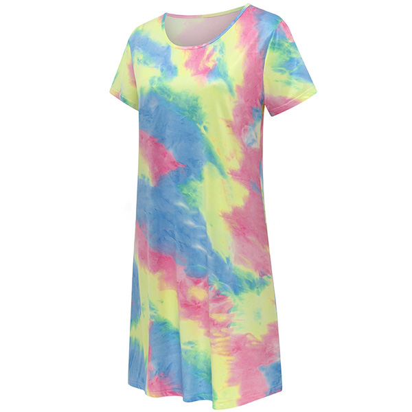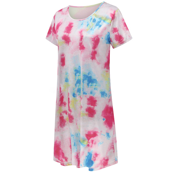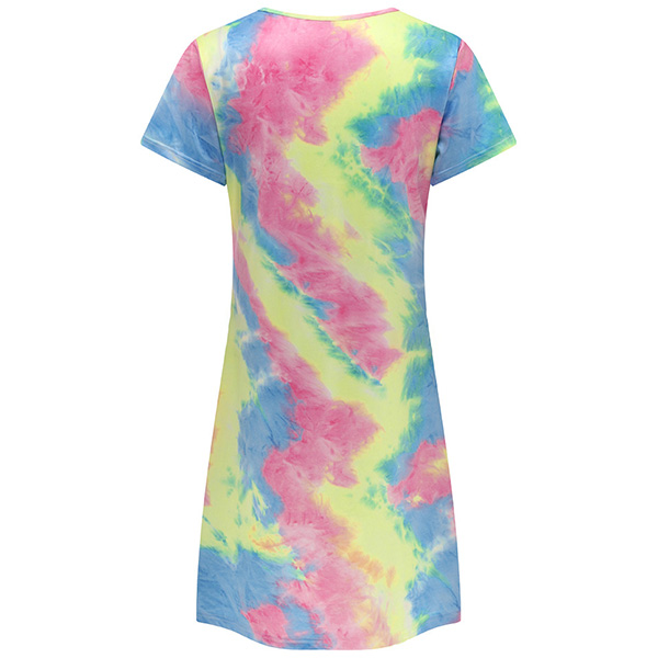 Fashion Tie-dye Printed Short Sleeve Round Neck T-shirt Dress