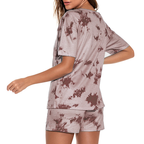 Fashion Tie-dye Printed Short Sleeve Round Neck T-shirt + Shorts Two-piece Set