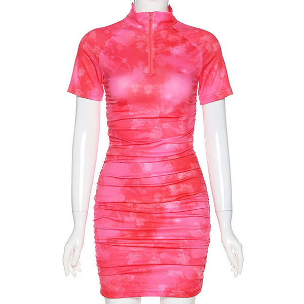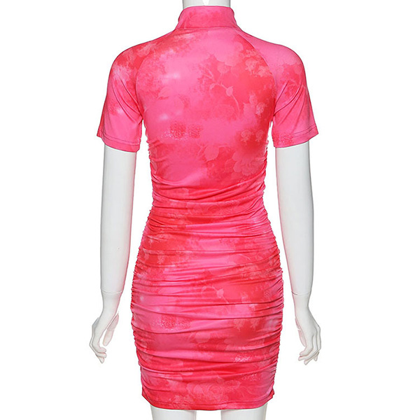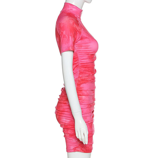 Fashion Tie-dye Printed Short Sleeve Stand Collar Slim Fit Dress