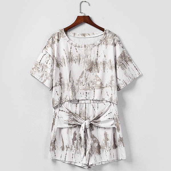 Fashion Tie-dye Printed Short Sleeve Top + Shorts Two-piece Set