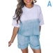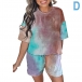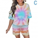 Fashion Tie-dye Printed Short Sleeve Top + Shorts Two-piece Set