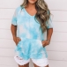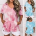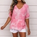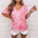 Fashion Tie-dye Printed Short Sleeve V-neck T-shirt