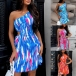 Fashion Tie-dye Slant Shoulder Side Cutout Bodycon Dress