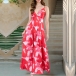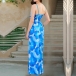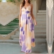 Fashion Tie-dye V-neck High-rise Backless Maxi Dress