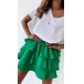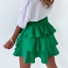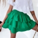 This fashionable mini skirt features a tiered design and an elastic waist, making it comfortable and easy to wear.