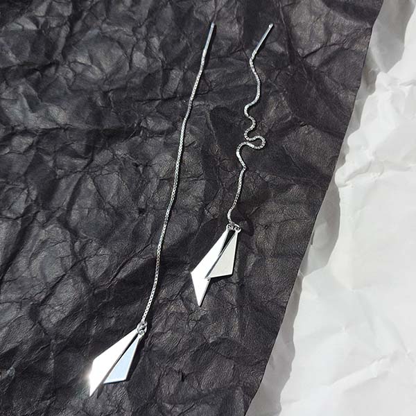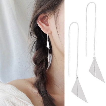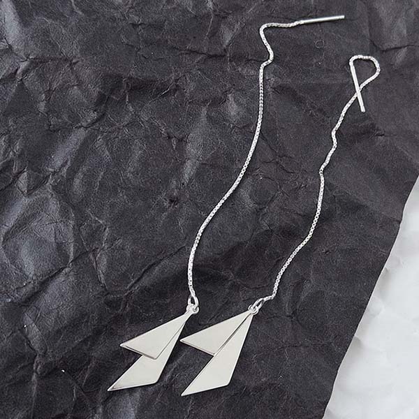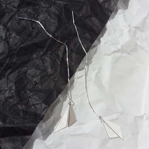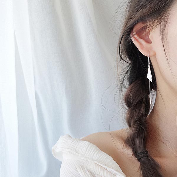 When you wanna make your overall dress up look more beautiful and charming,you can consider adding this pair of earrings. This pair of long tassel earrings is decorated with triangle pendant,simple yet chic. Enrich your accessories box with these pieces.