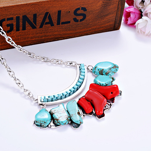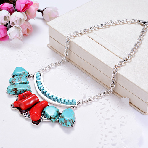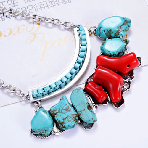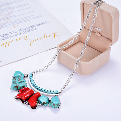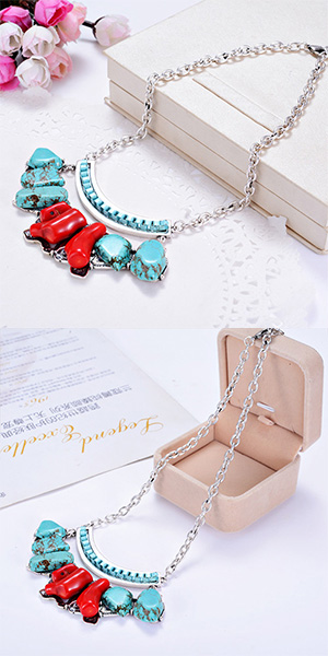 Its Turquoise and Red Coral pendant design makes it look not so monotonous.